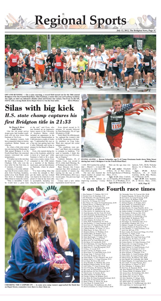 Additionally, proceeds from the race have benefited the following charities and public service organizations: Bridgton Community Center, Bridgton Hospital Oncology Clinic, Bridgton Recreation Advancement Group, Christmas Angel Program, Hurricane Katrina Library Relief, Lakes Environmental Association, Lakes Region Senior Transportation Program, Project WARM/Fuel Assistance Program, Shawnee Peak’s Adaptive Ski Program, Pondicherry Park, Stevens Brook Elementary School Reading Boost Program, Rufus Porter Museum, Lakes Region Substance Abuse Coalition, Special Olympics, and Bridgton High School Scholarship Foundation.