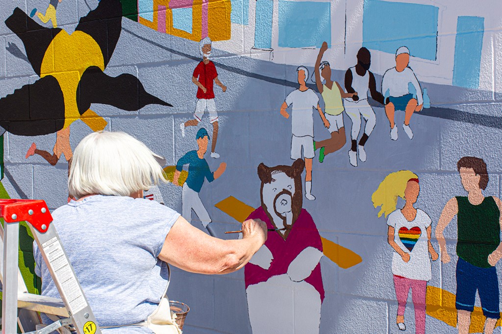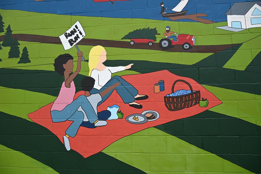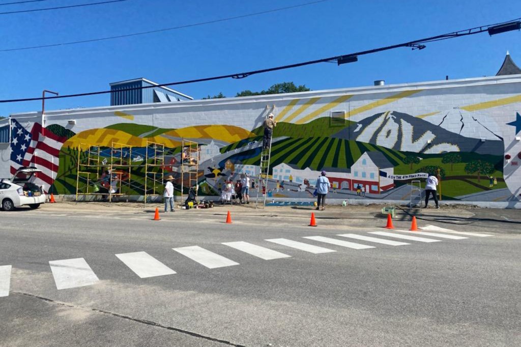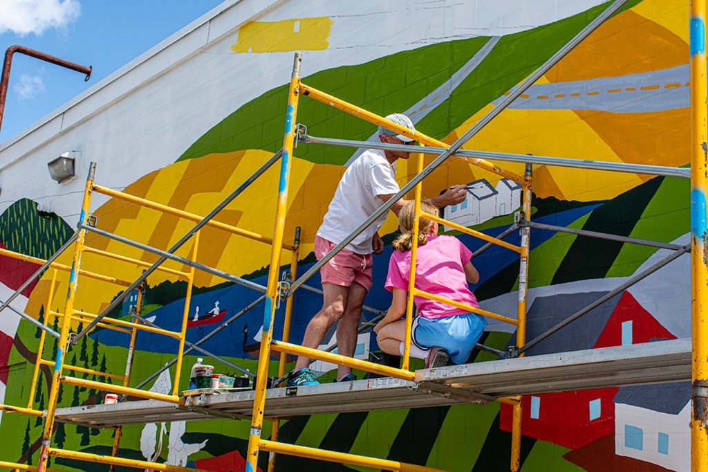 Local artist, Kate Erwin, was chosen as the mural designer for the project. She had also designed the mural on the side of the Bridgton Books building. Painting of the mural commenced during the very rainy summer of 2023 with a plan to be completed by June 15.
